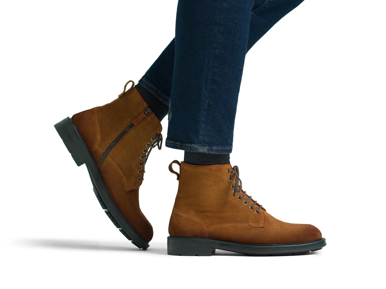 Premium cognac suede leather upper for durability and style
